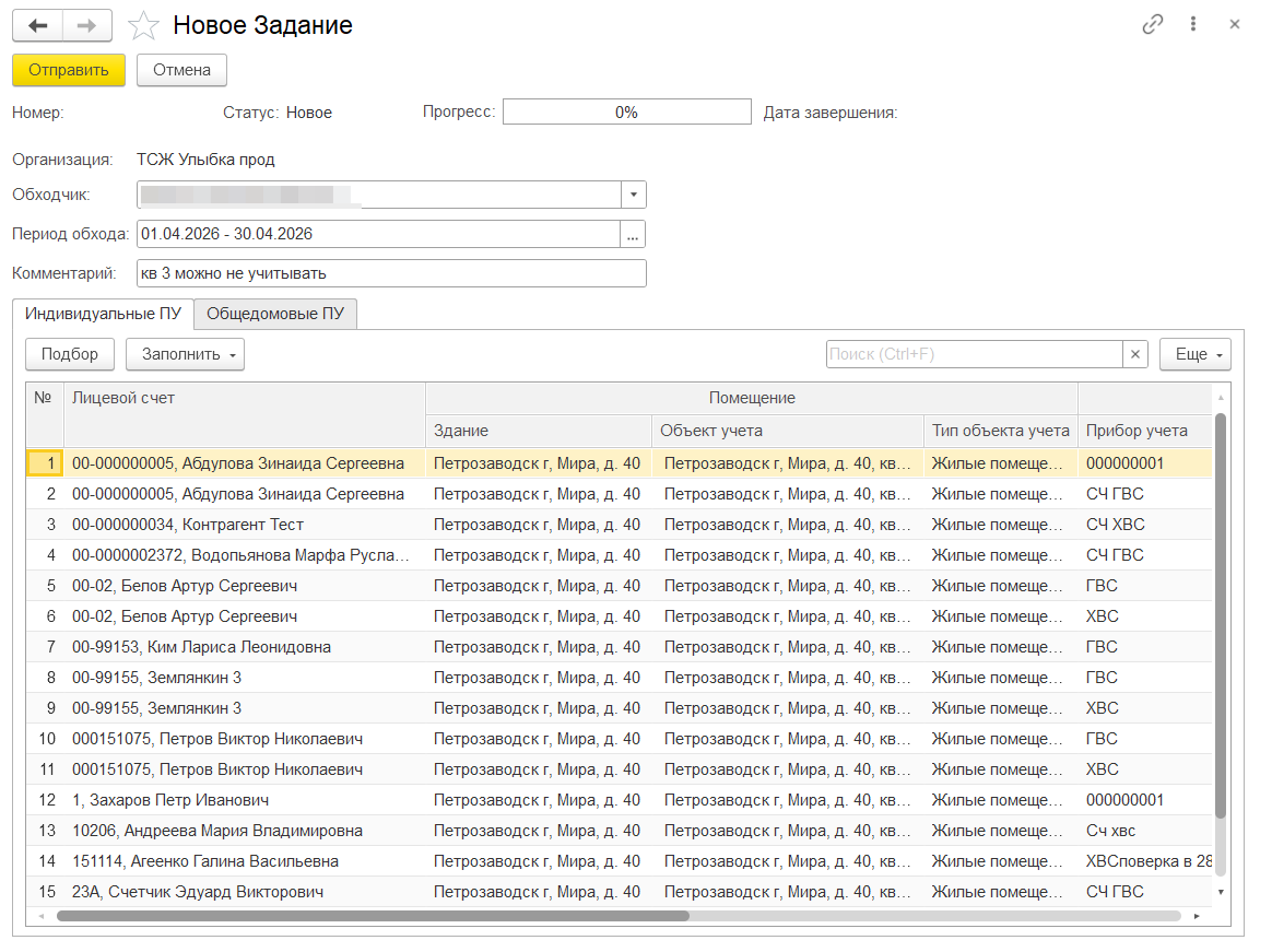 9. После загрузки показаний будет создан документ «Ввод показаний индивидуальных приборов учета» или документ «Ввод показаний коллективных приборов учета».