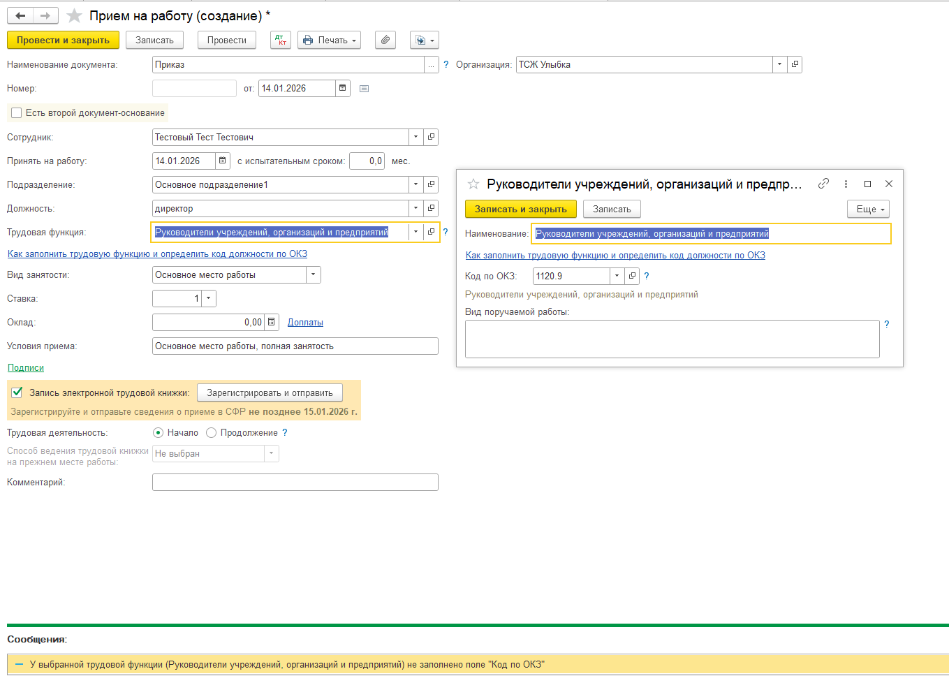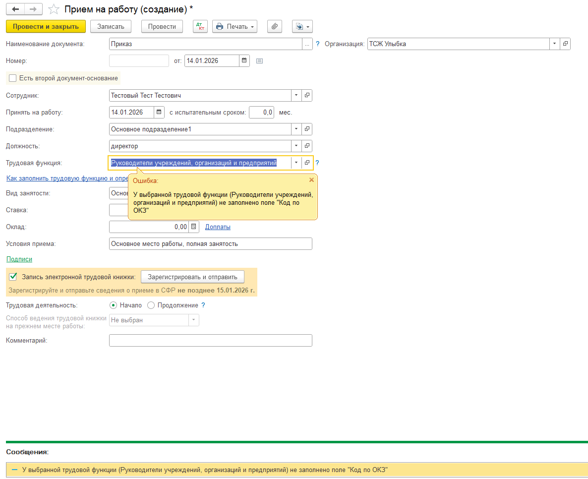 В открывшемся документе указать дату и оставить значение тарифа пустым, нажать «Провести и закрыть».
