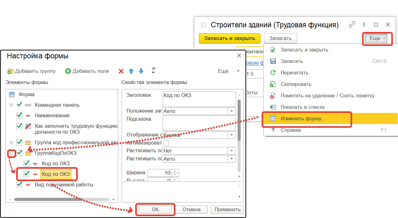 В открывшейся форме: