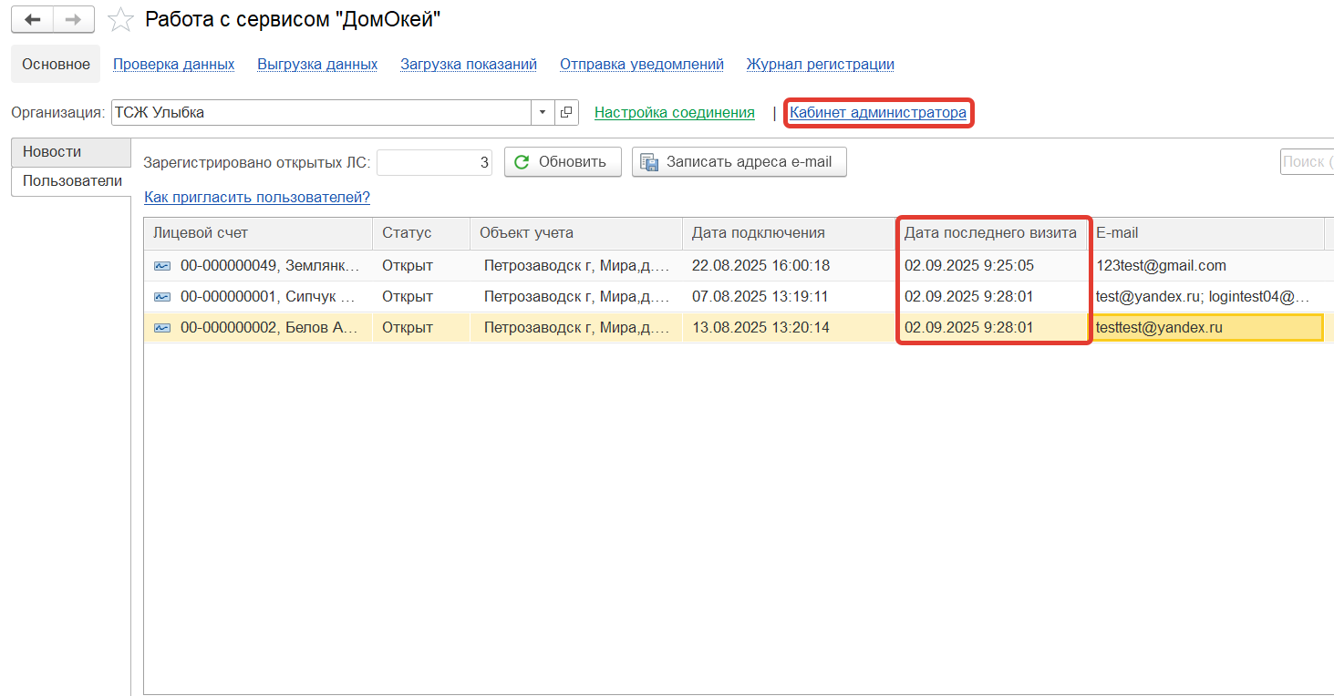 Также появилась возможность просматривать дату последнего визита пользователя. Данная информация отображается на вкладке «Пользователи» в соответствующей колонке. Эта возможность временно недоступна.