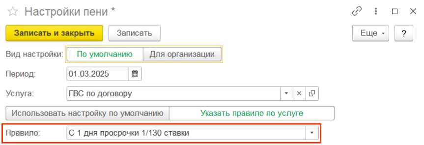 Добавлено новое правило расчета пени — «С 1 дня просрочки 1/130 ставки».