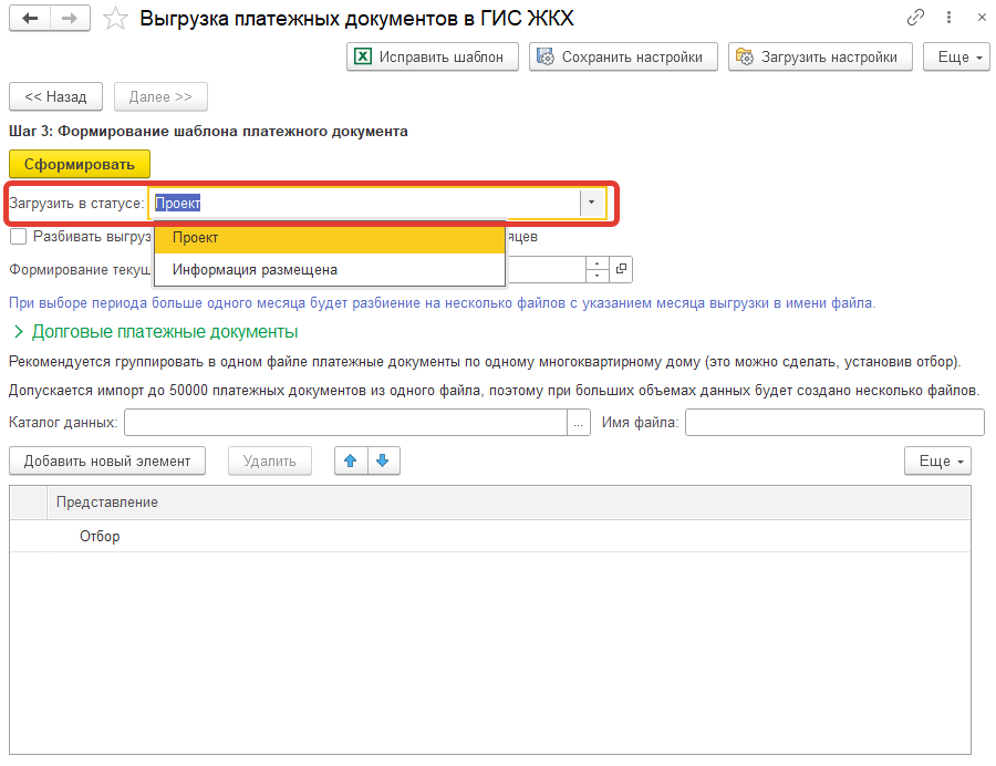 Обработка «Выгрузка платежных документов в ГИС ЖКХ»