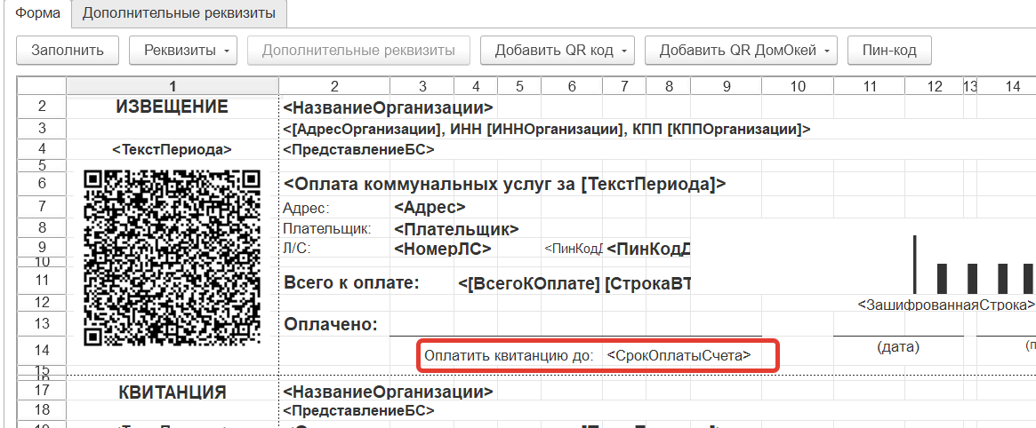 Поле «Срок оплаты» – количество дней от конца расчетного периода, в течение которых необходимо внести плату, или конец месяца.